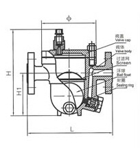 該閥利用浮力原理,浮球根據(jù)凝結(jié)水量的多少隨水位的變化而作升降,自動(dòng)調(diào)節(jié)閥座孔的開度,連續(xù)排放凝結(jié)水。當(dāng)凝結(jié)水停止進(jìn)入時(shí),浮球靠自重降到底部,關(guān)閉排水閥座孔。由于排水閥座孔在凝結(jié)水位以下,水汽自然分離,形成水封,達(dá)到無蒸汽泄漏。